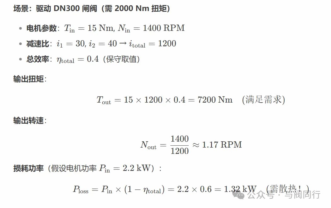 | 行星齿轮+蜗杆 | 频繁调节阀(η_total↑至0.6~0.7) | 成本增加40% |